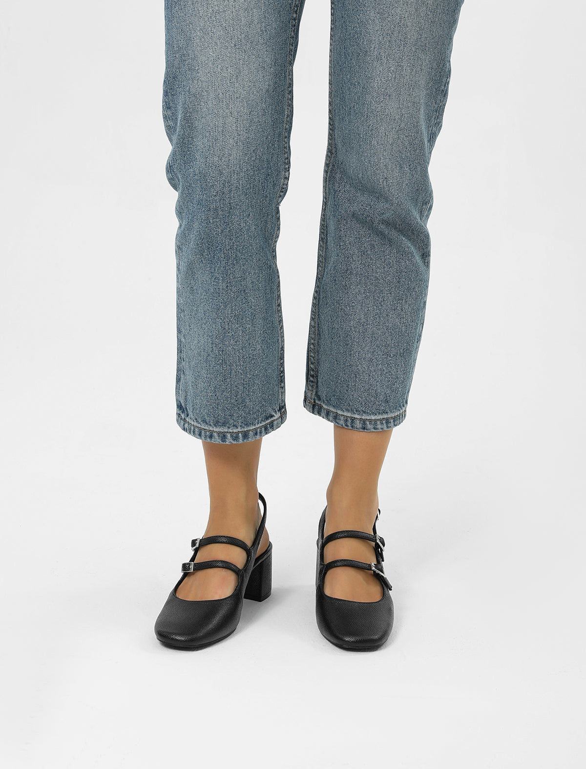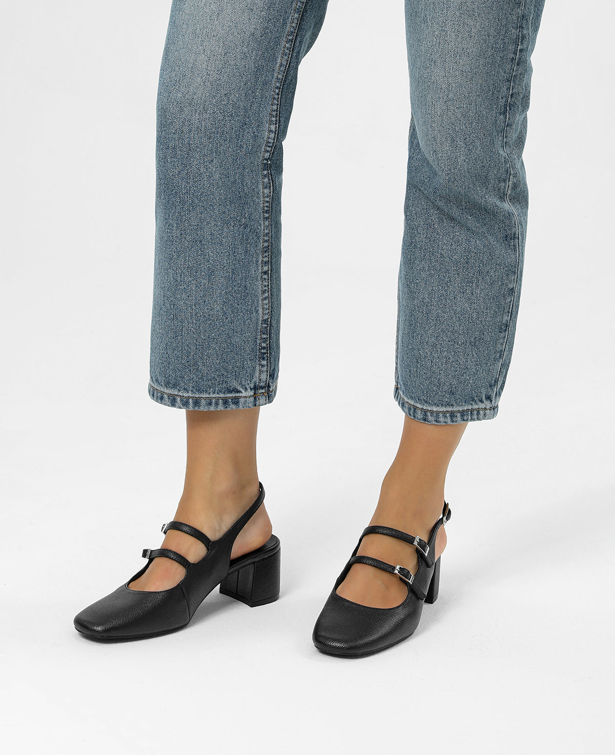 These women's heels feature a stylish design and a soft, light purple color, with two adjustable straps for enhanced stability and comfort. The medium heel offers a perfect balance of elegance and comfort, making them suitable for both work and everyday wear.