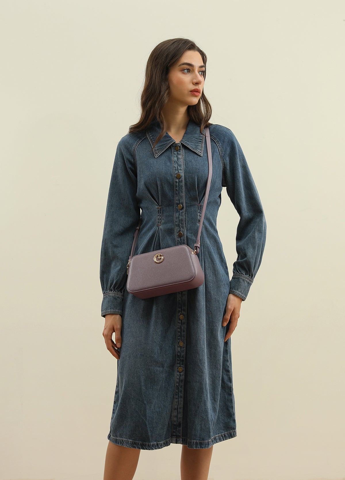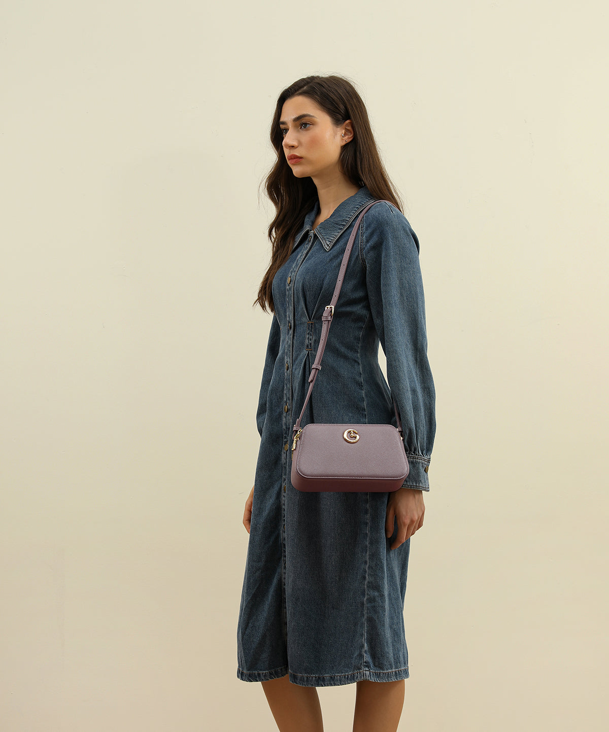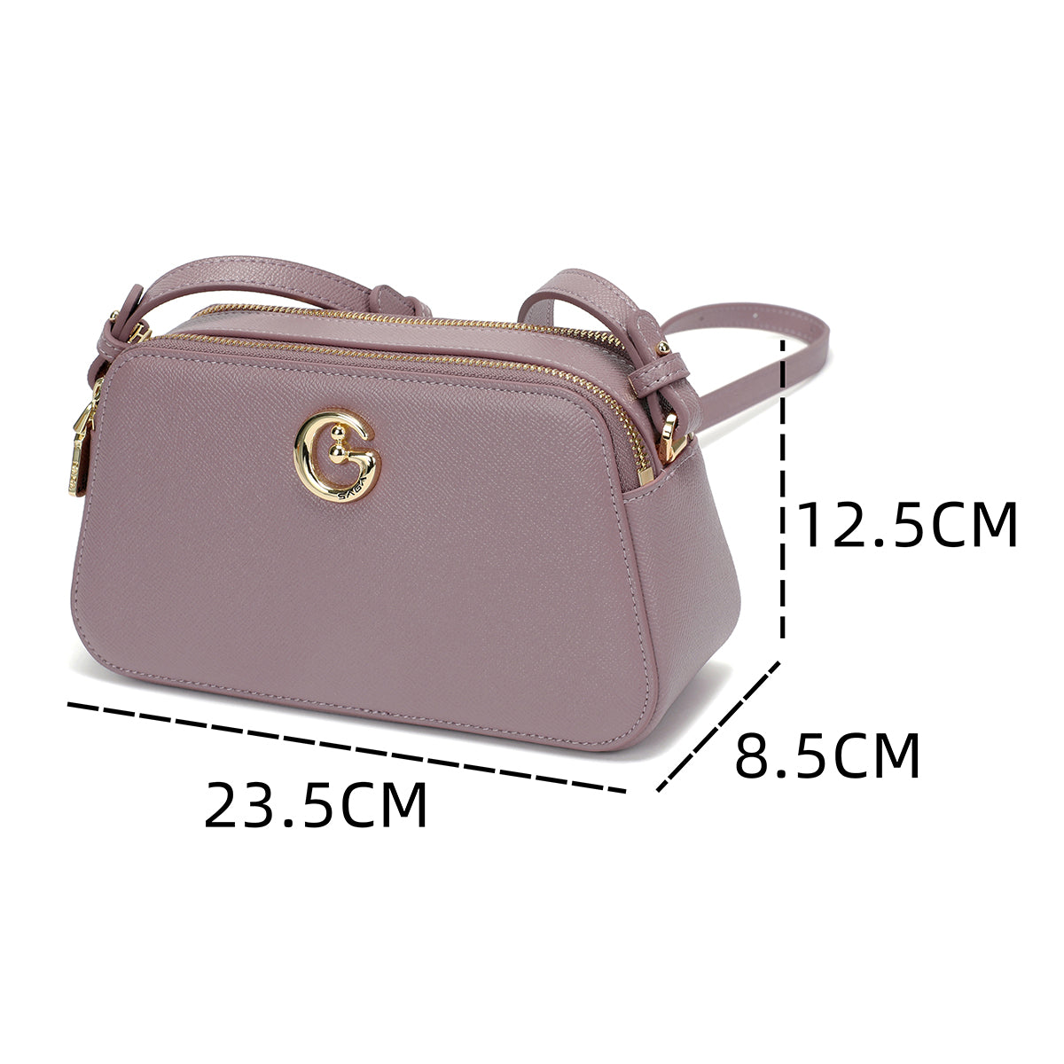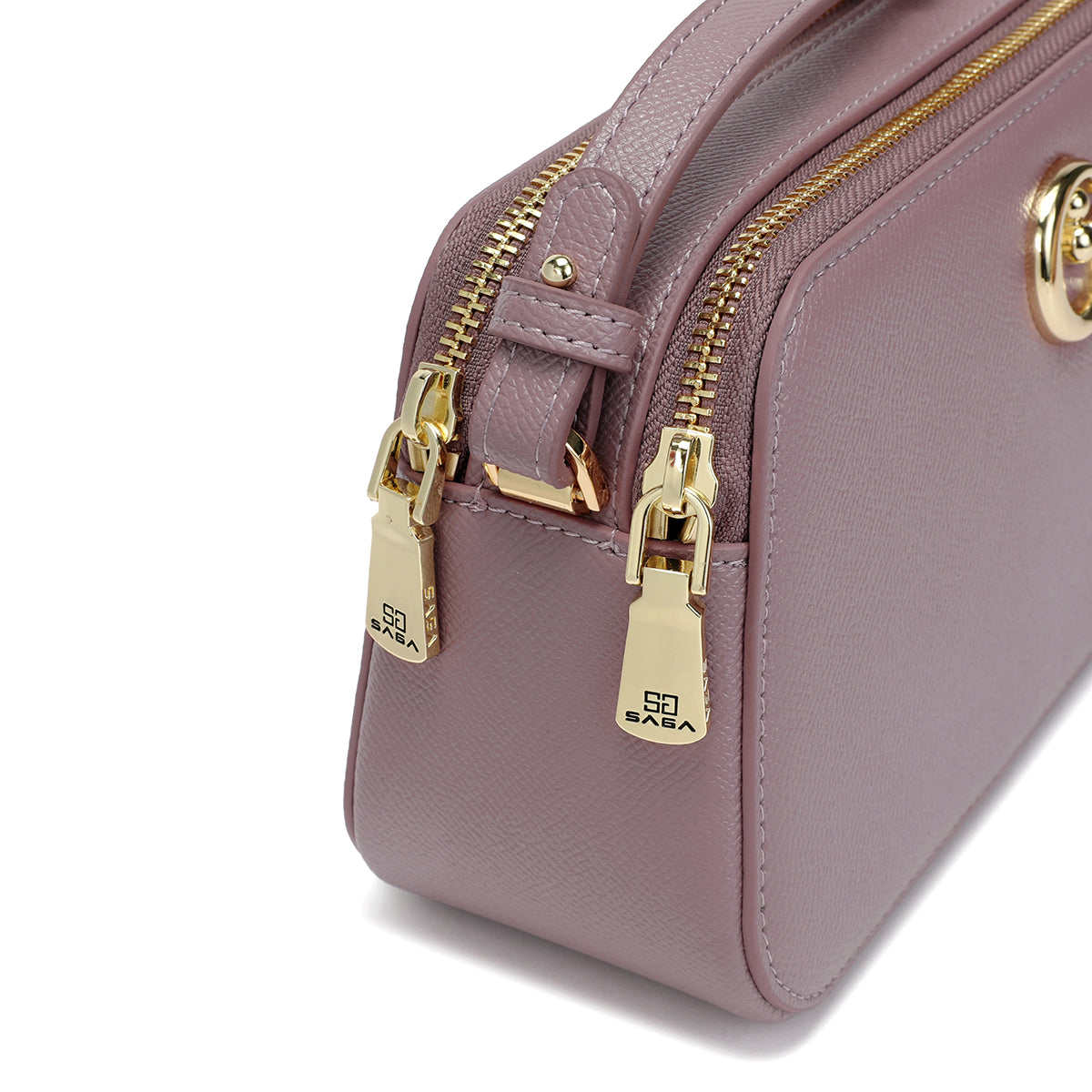 A stylish women's shoulder bag in a trendy mauve color, featuring a top zipper for secure closure and better organization. Suitable for everyday use and outings, with a practical size for carrying essentials easily and stylishly.