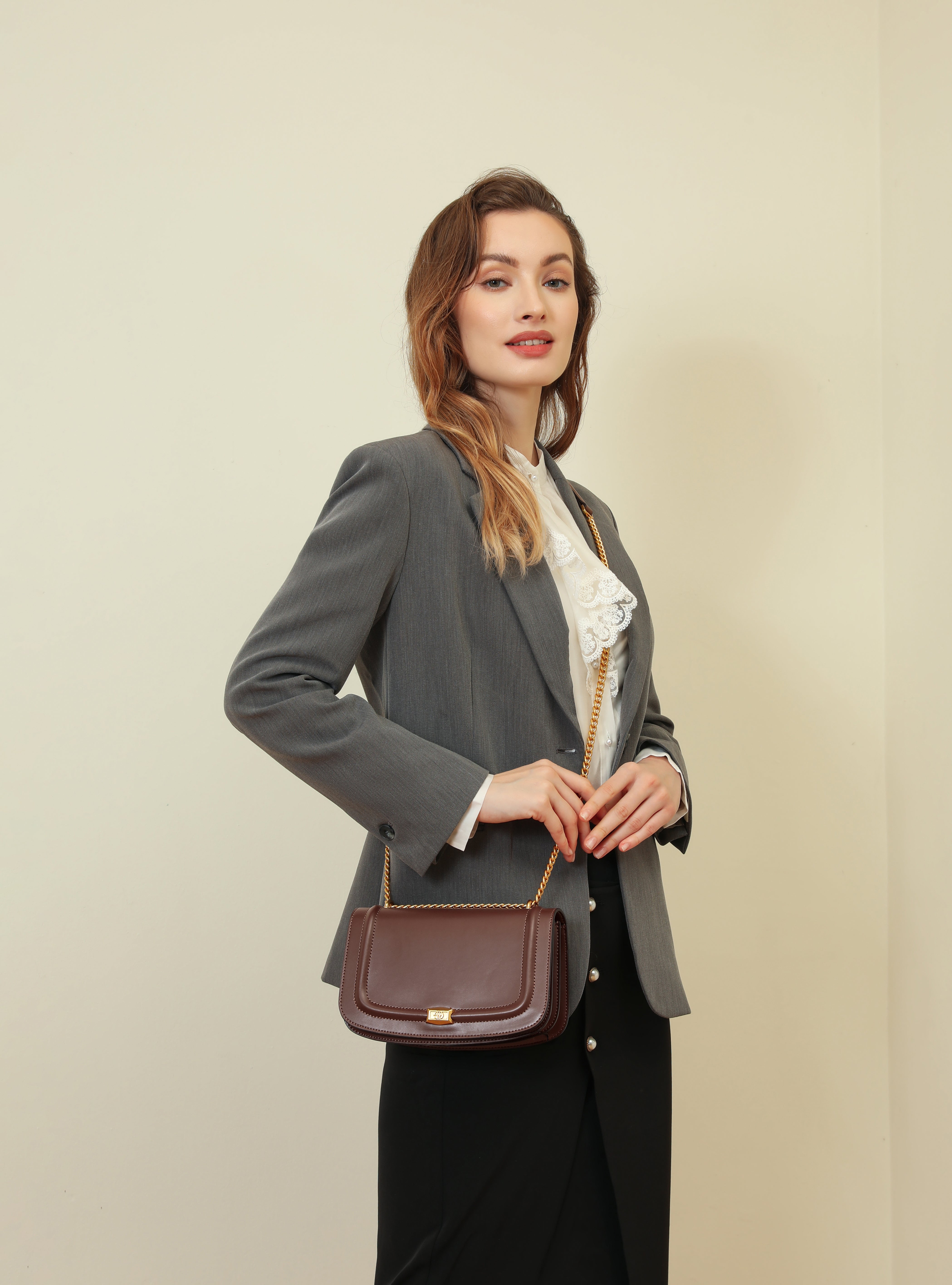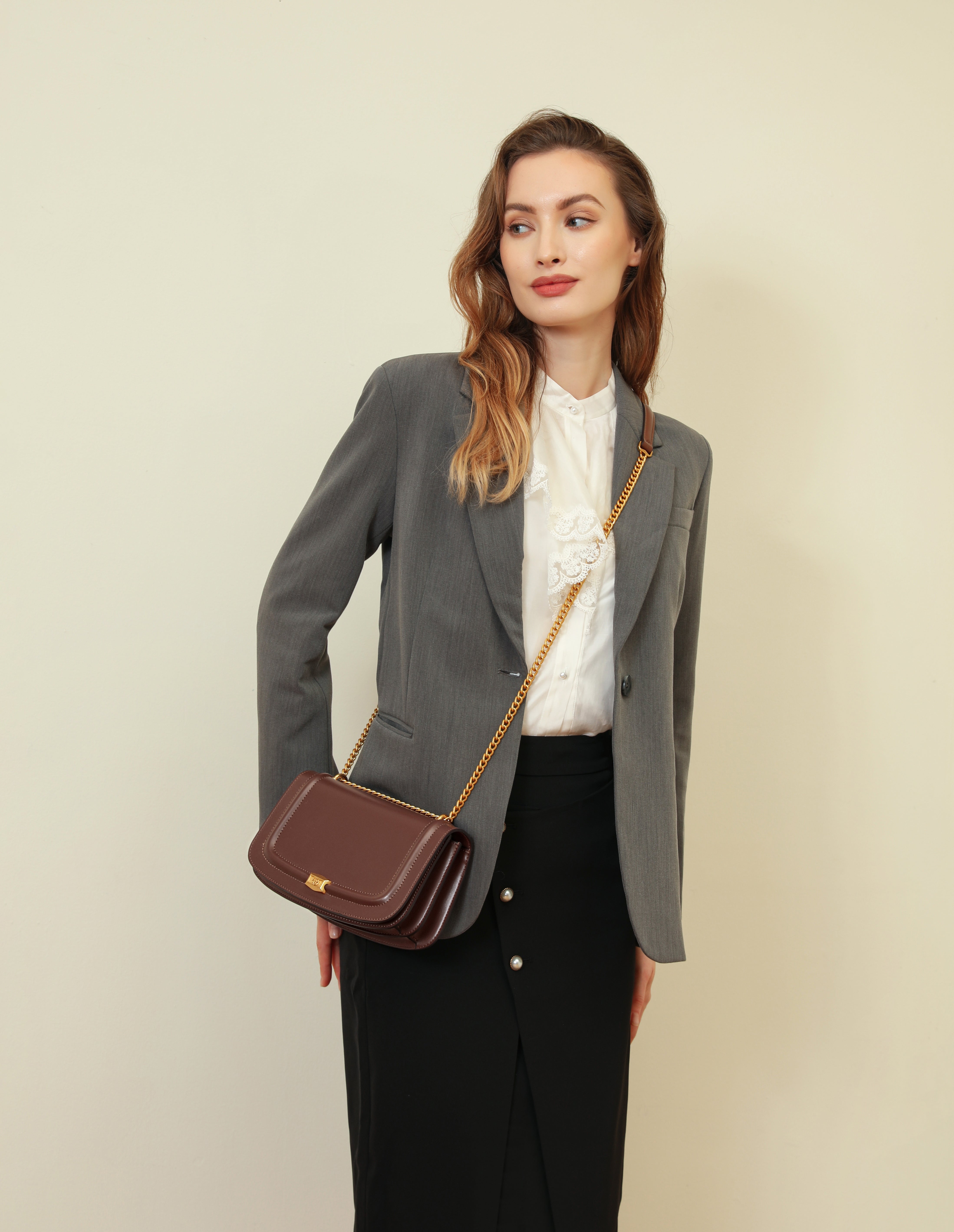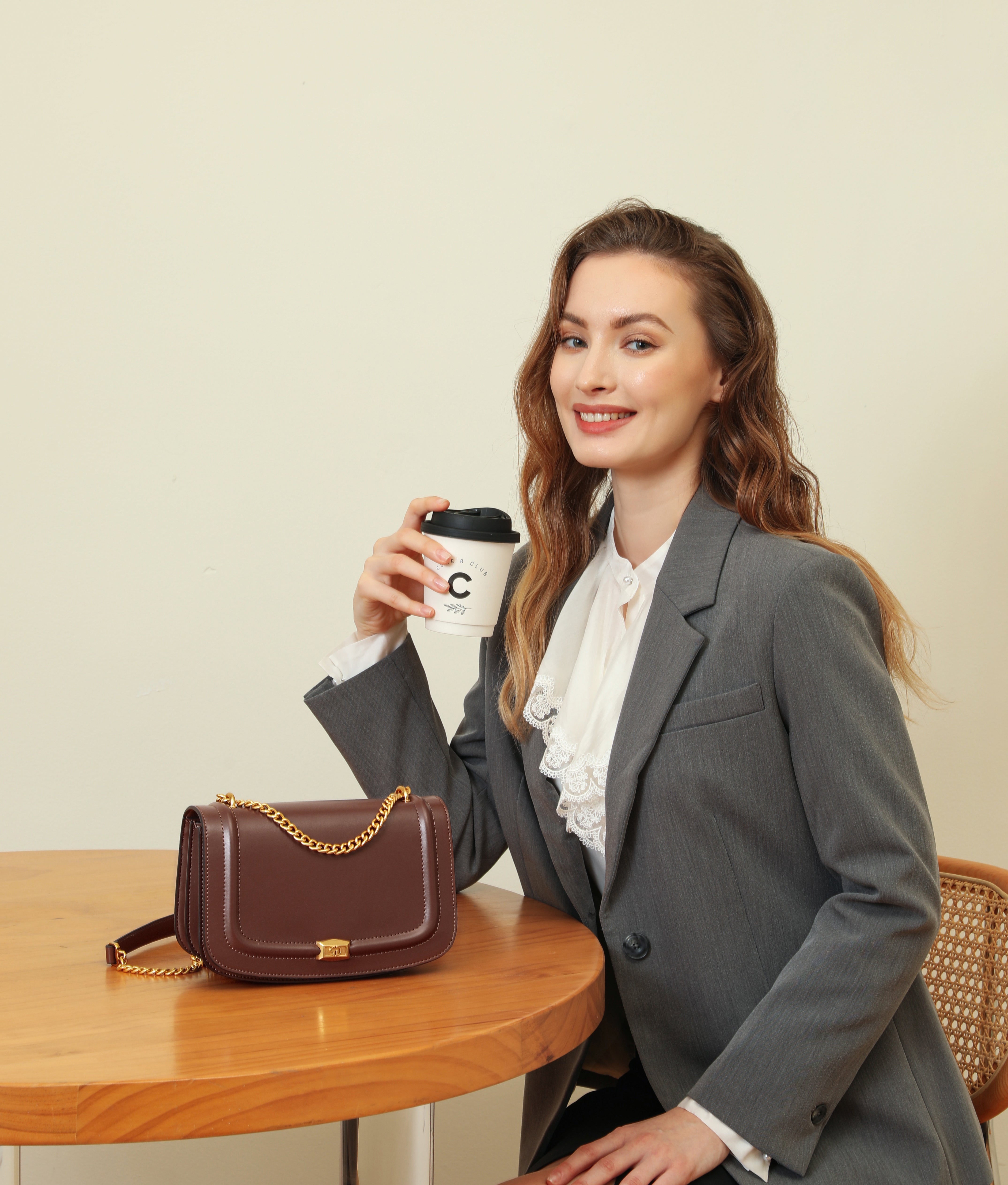 حقيبة كتف نسائية بتصميم أنيق ولون بني عصري مناسبة للاستخدام اليومي والخروجات، مع حجم عملي لحمل الأساسيات بسهولة وأناقة.