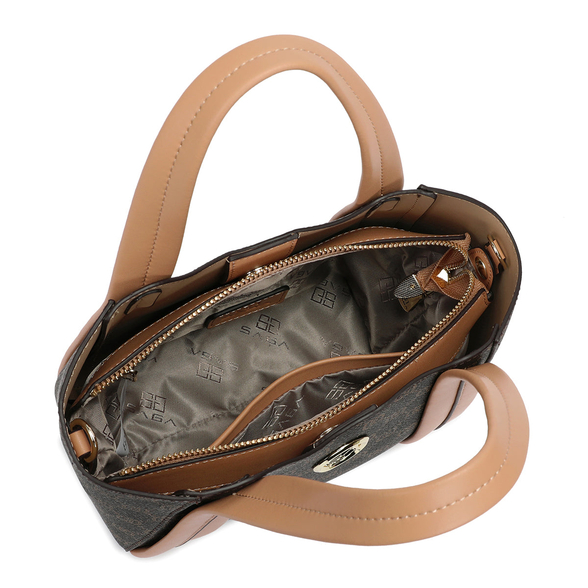 • تفاصيل ذهبية بشعار ماركة ساغا